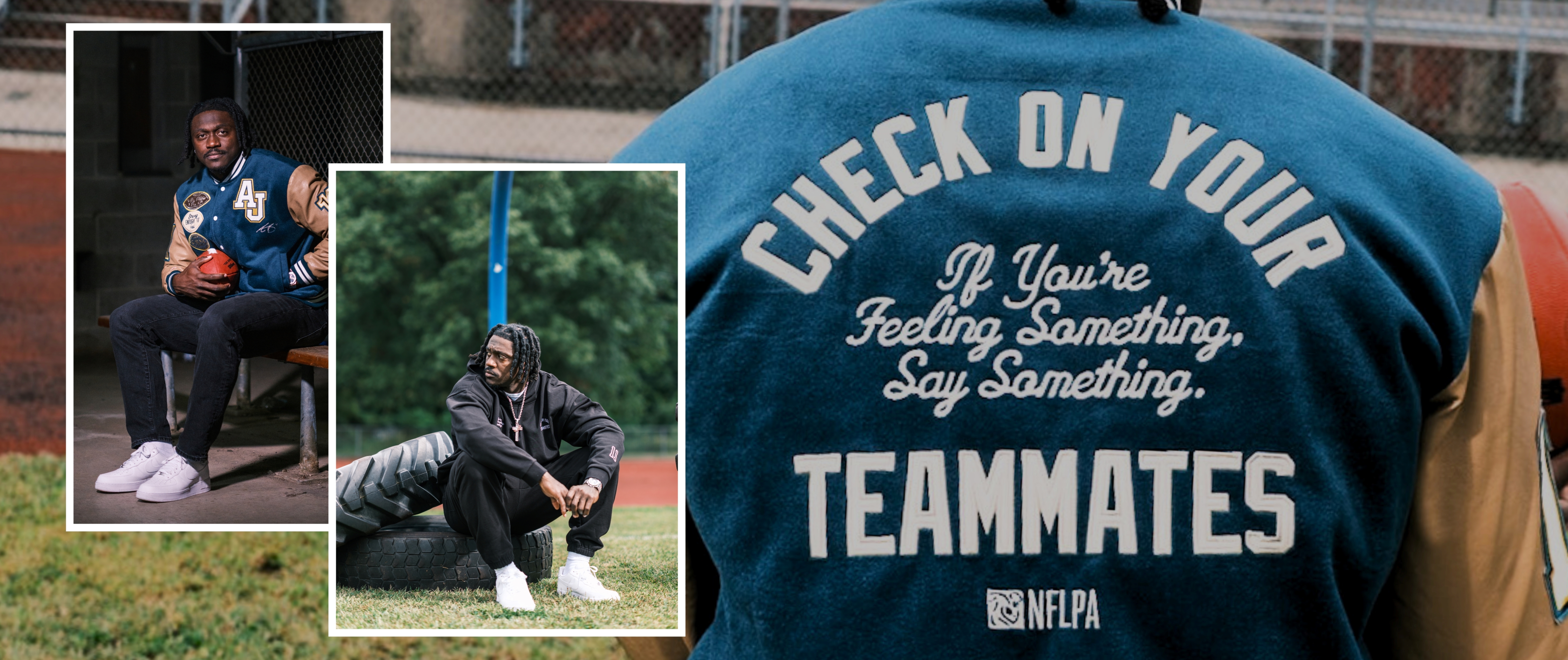 The breakthrough came when the work stopped feeling like a campaign and started reflecting A.J.’s own honest, grounded voice. He shaped the design and message, and his idea, “If you’re feeling something, say something,” became the heart of the collection. With Peace Collective and the NFLPA behind it, the initiative became a simple truth made visible: checking in is not a weakness - it's a lifeline.